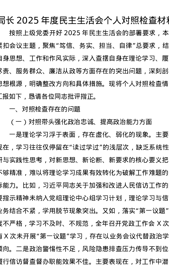 局长2025年度xxxxx个人对照检查材料