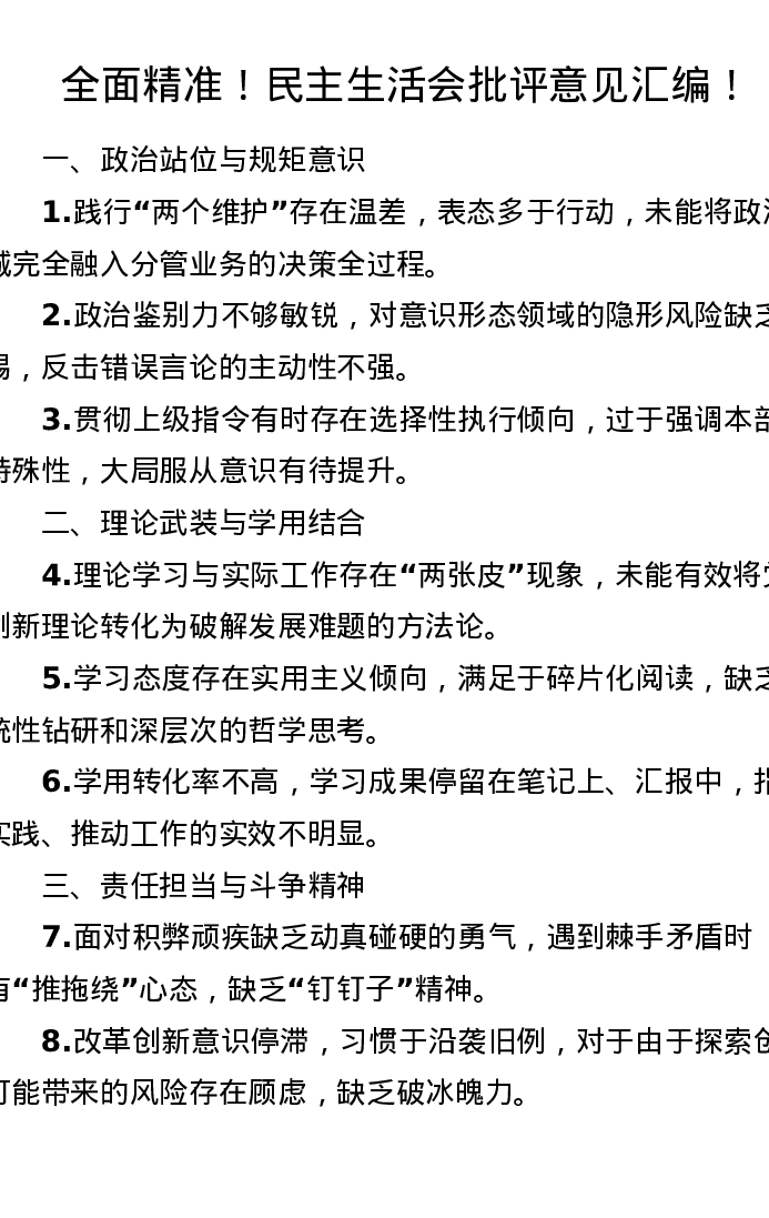 全面精准!xxxxx批评意见汇编!