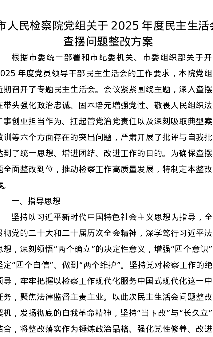 市人民检察院党组关于2025年度xxxxx查摆问题整改方案