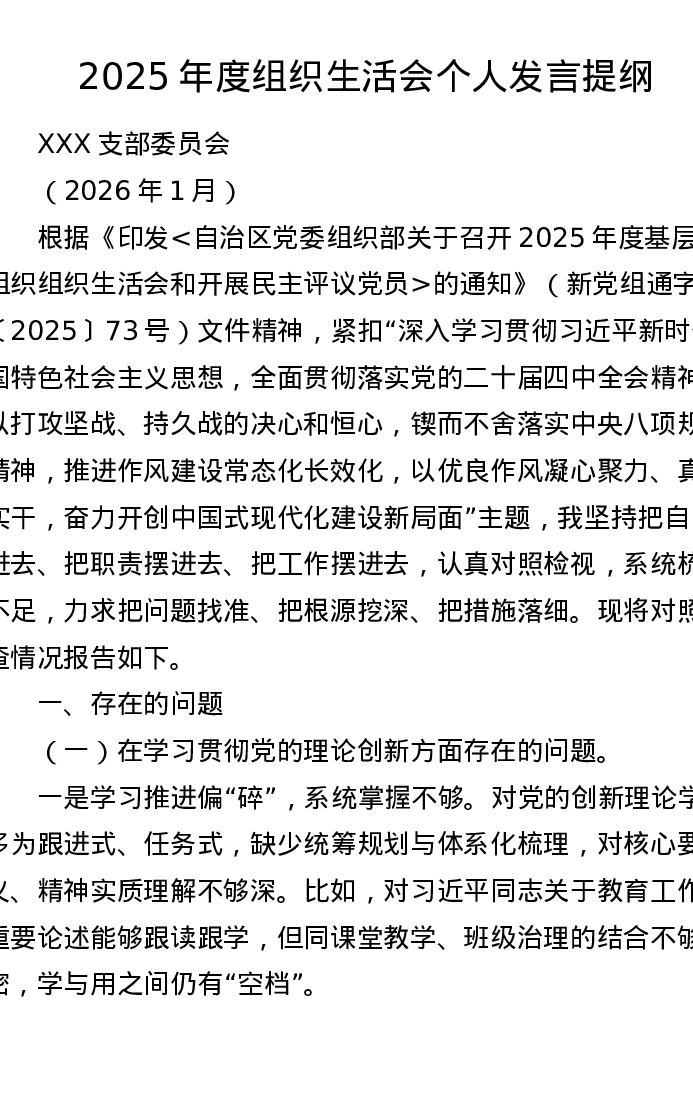 学校2025年度组织xxx个人发言提纲