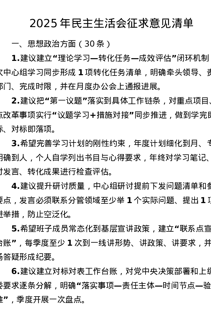 2025年xxxxx征求意见清单180条