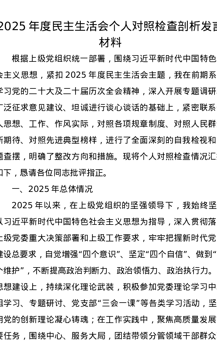 2025年度xxxxx个人对照检查剖析发言材料