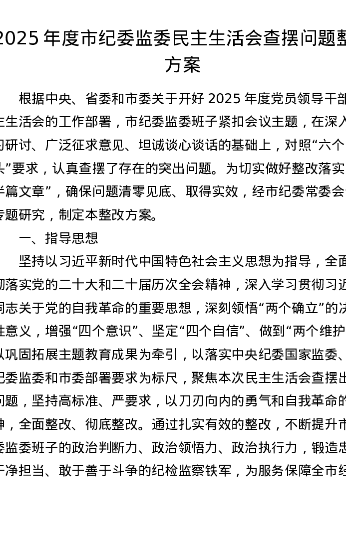 2025年度市纪委监委xxxxx查摆问题整改方案