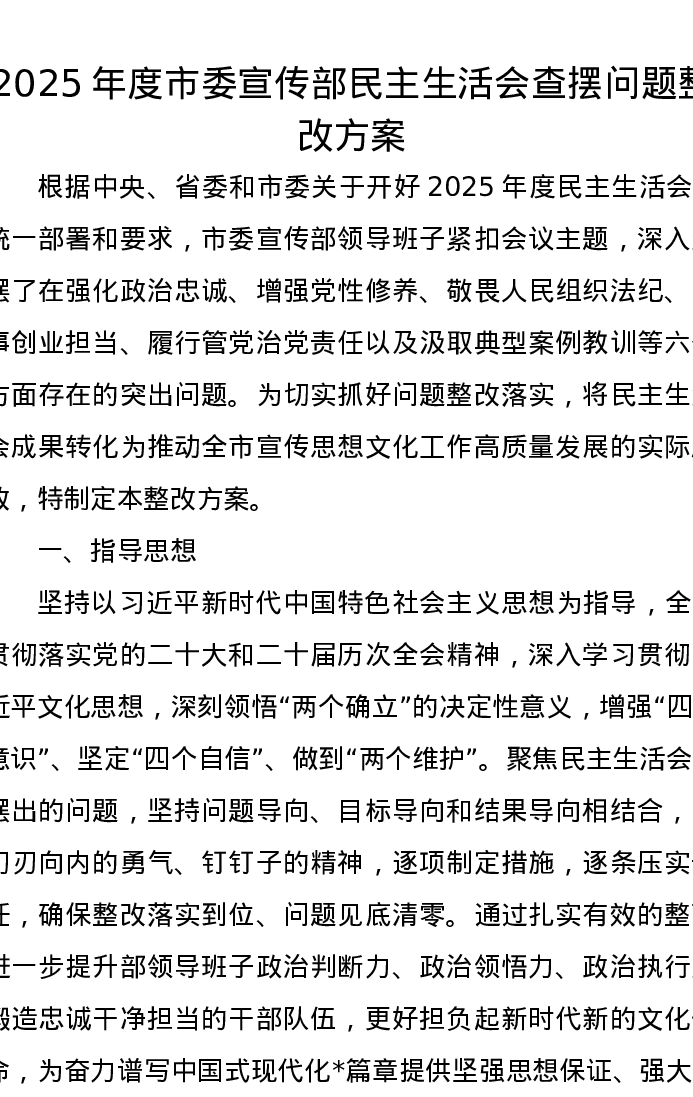 2025年度市委宣传部xxxxx查摆问题整改方案