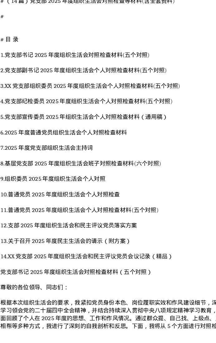 汇编:党支部2025年度组织xxx对照检查等材料(含全套资料)14篇