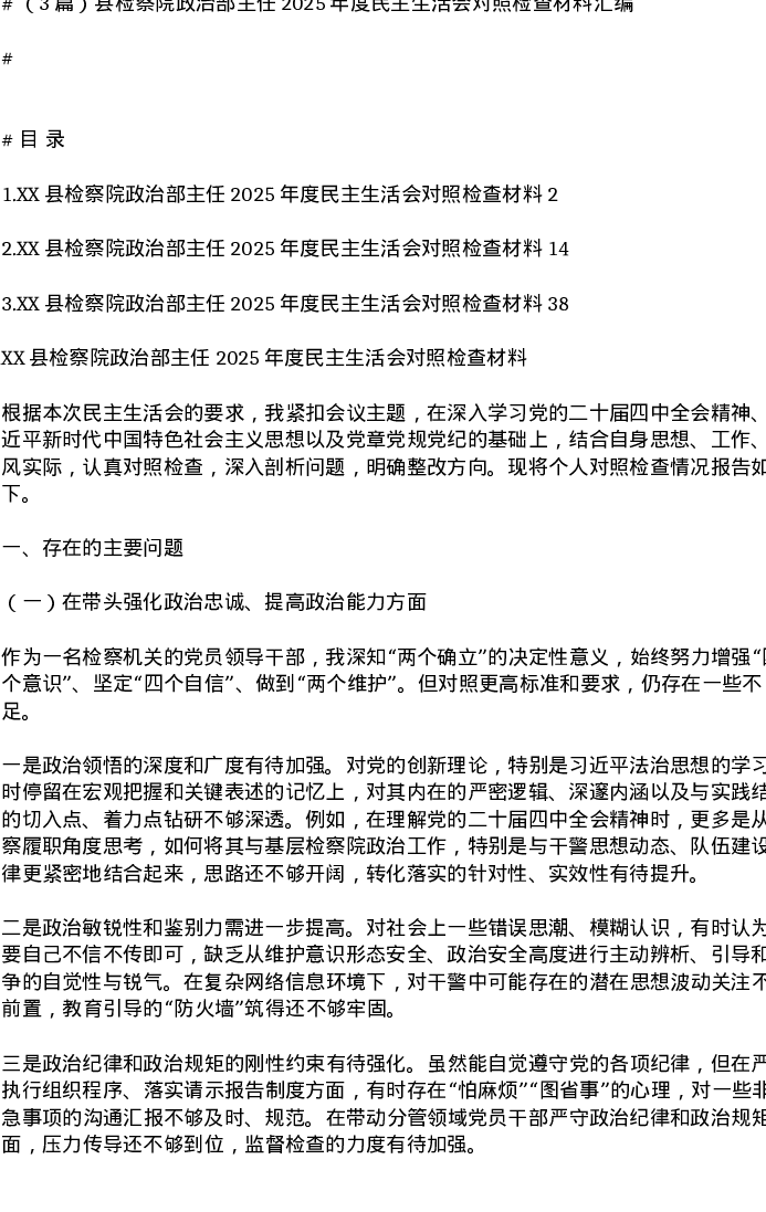 汇编:县检察院政治部主任2025年度xxxxx对照检查材料3篇