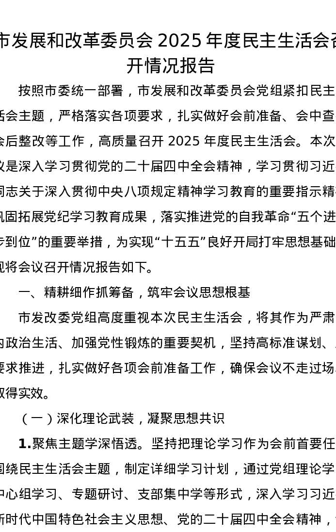 市发展和改革委员会2025年度xxxxx召开情况报告