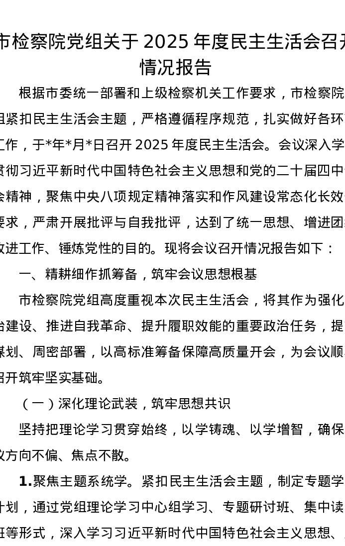 市检察院党组关于2025年度xxxxx召开情况报告