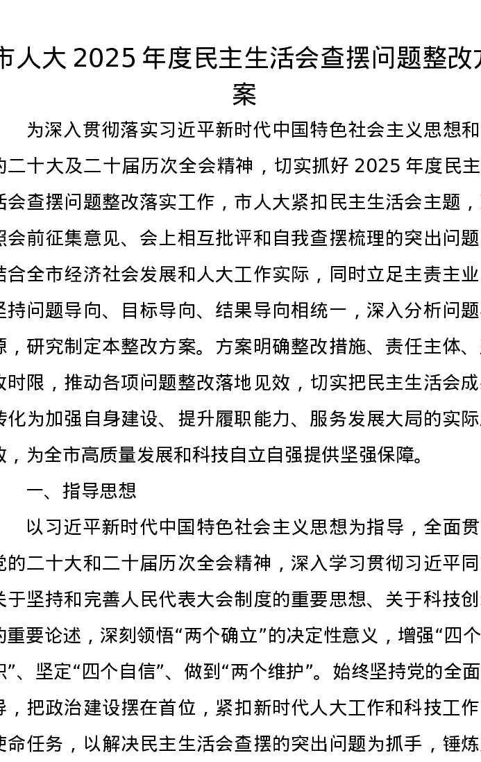 市人大2025年度xxxxx查摆问题整改方案