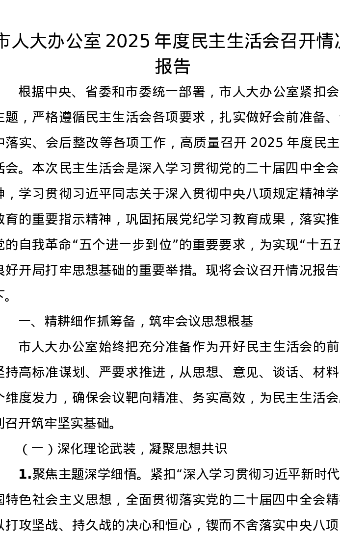 市人大办公室2025年度xxxxx召开情况报告