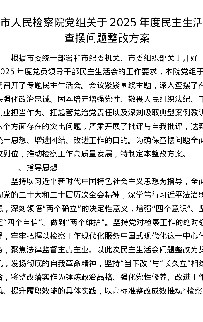 市人民检察院党组关于2025年度xxxxx查摆问题整改方案