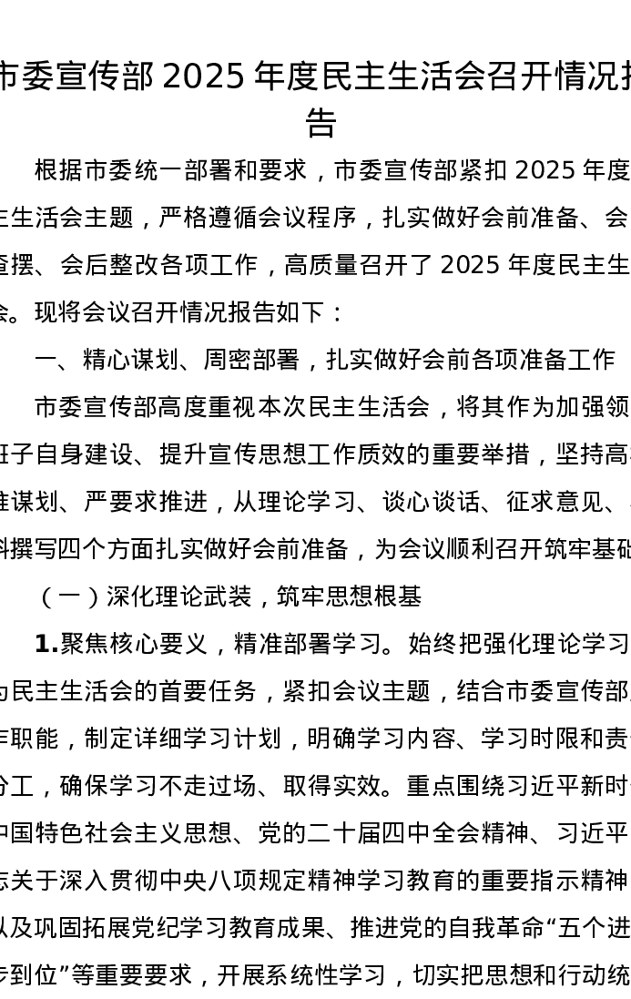 市委宣传部2025年度xxxxx召开情况报告