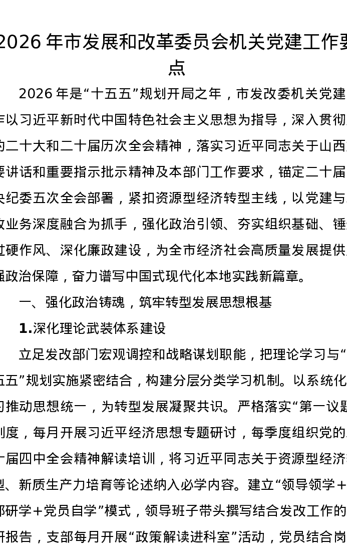 2026年市发展和改革委员会机关党建工作要点