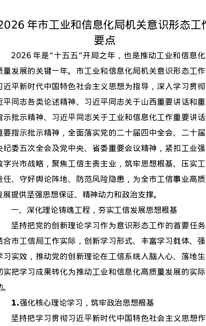 2026年市工业和信息化局机关意识形态工作要点
