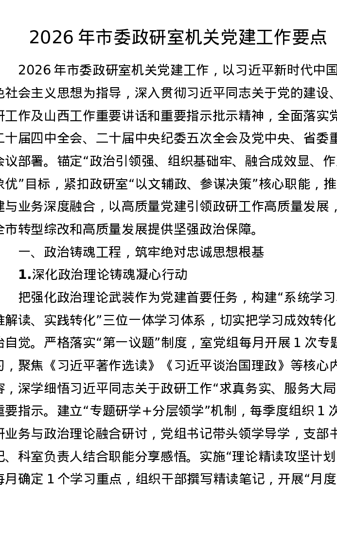 2026年市委政研室机关党建工作要点