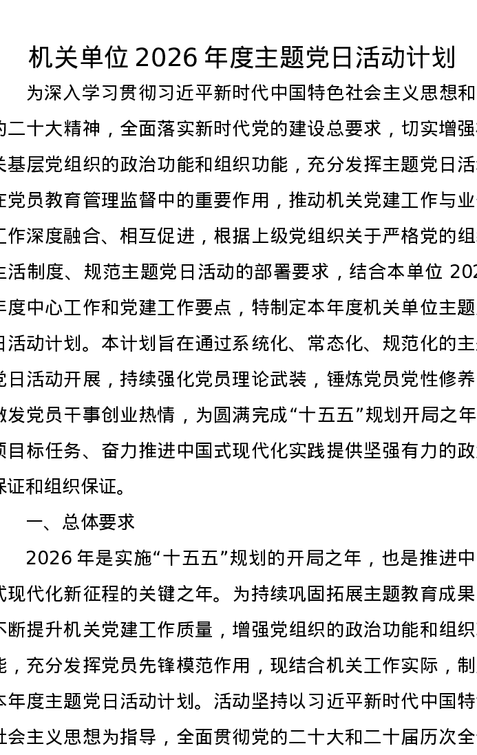 机关单位2026年度主题党日活动计划