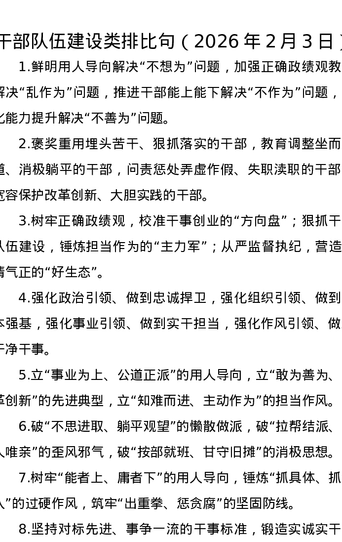 干部队伍建设类排比句(2026年2月3日)