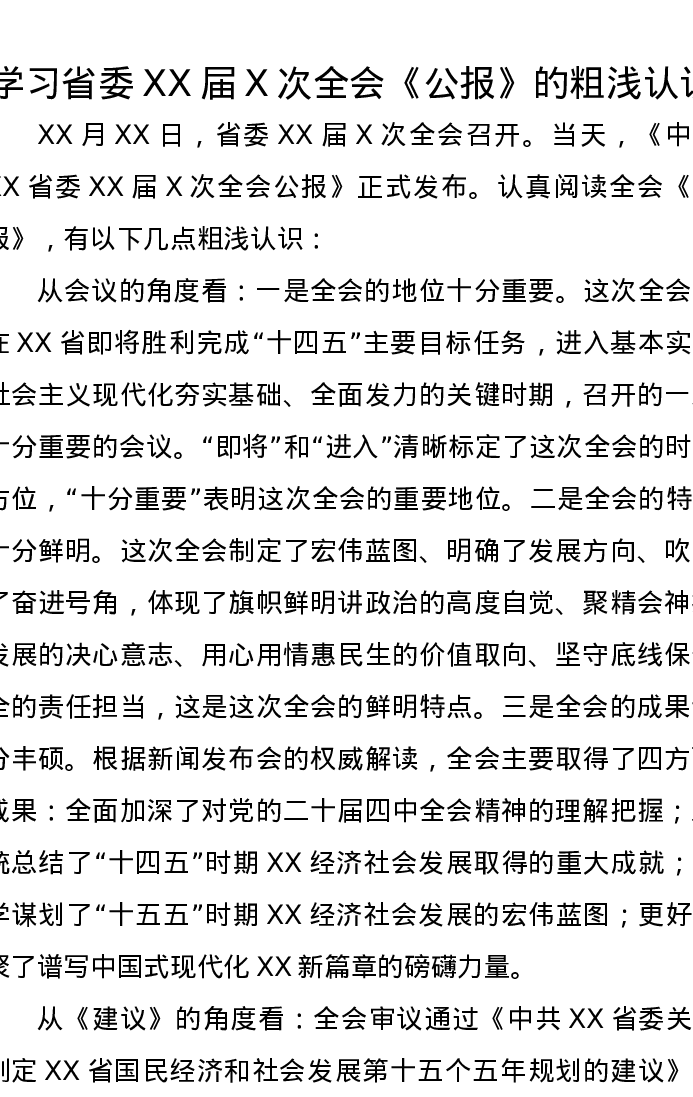 学习省委XX届X次全会《公报》的粗浅认识