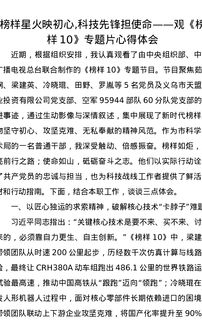 榜样星火映初心,科技先锋担使命——观《榜样10》专题片心得体会