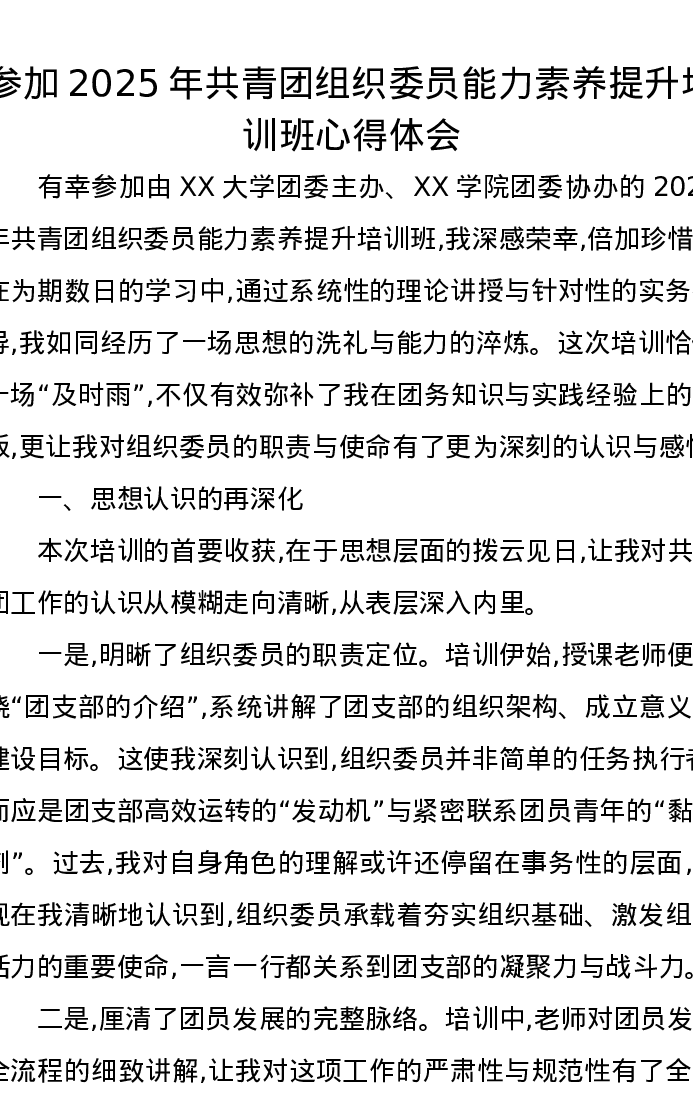 参加2025年共青团组织委员能力素养提升培训班心得体会