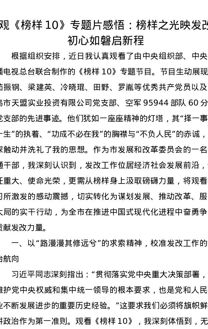 观《榜样10》专题片感悟:榜样之光映发改,初心如磐启新程
