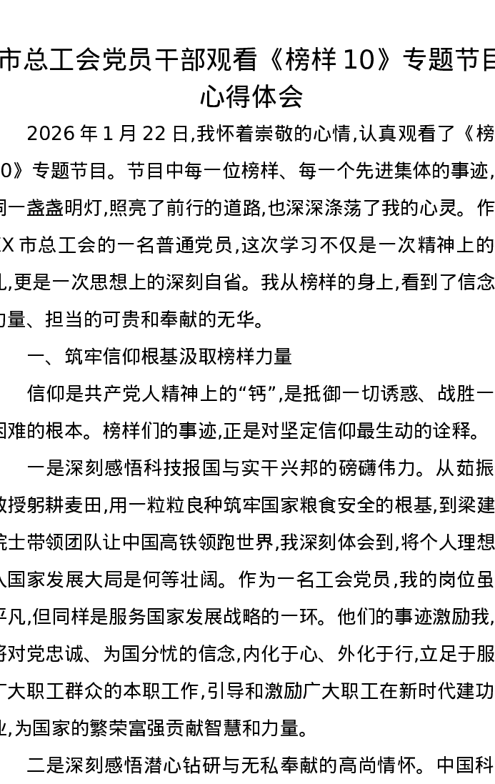 市总工会党员干部观看《榜样10》专题节目心得体会