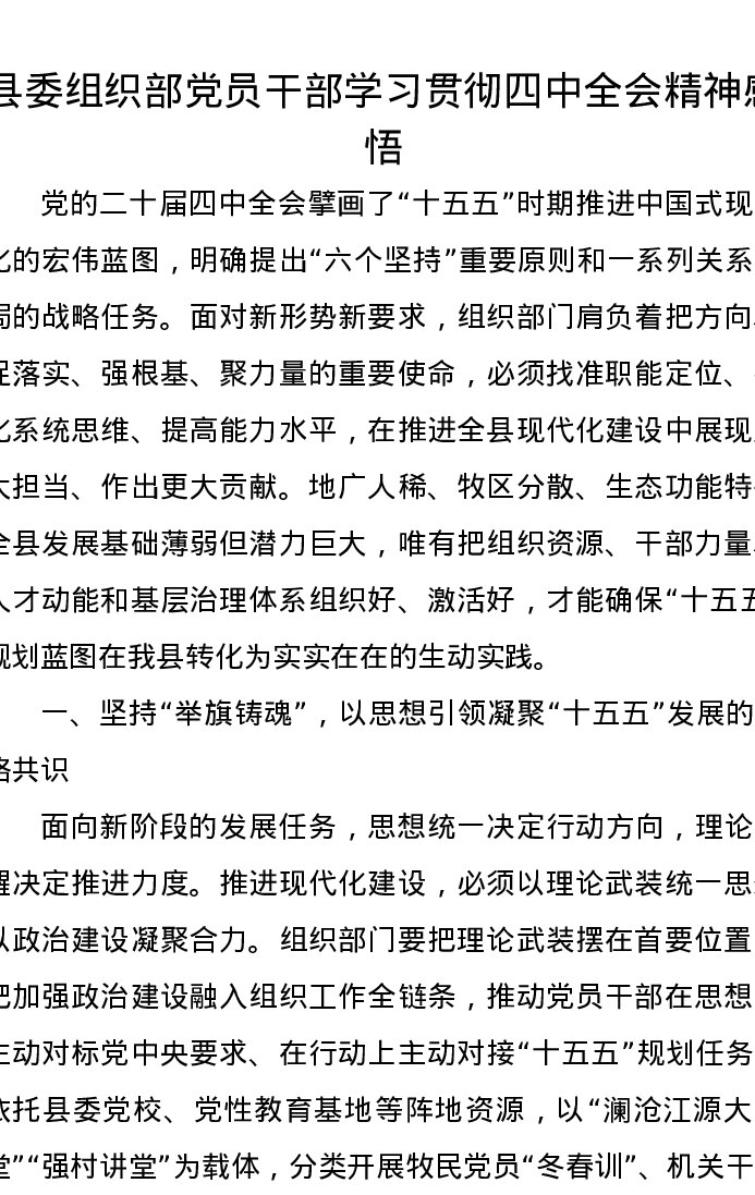 县委组织部党员干部学习贯彻二十届四中全会精神感悟
