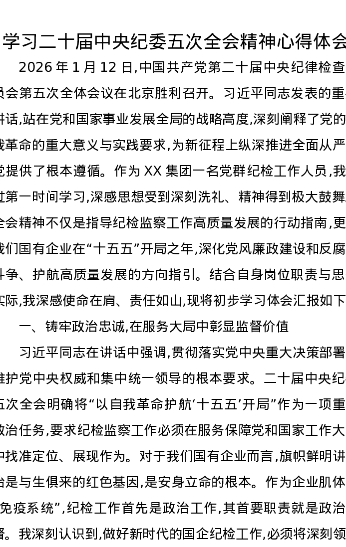 学习二十届中央纪委五次全会精神心得体会