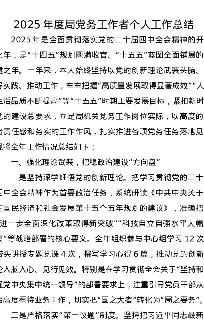 2025年度局党务工作者个人工作总结