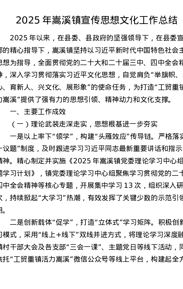 2025年嵩溪镇宣传思想文化工作总结