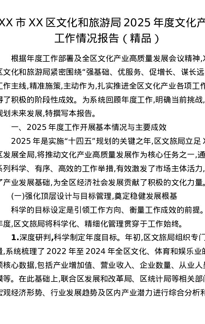XX市XX区文化和旅游局2025年度文化产业工作情况报告
