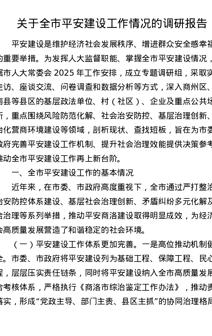 关于全市平安建设工作情况的调研报告