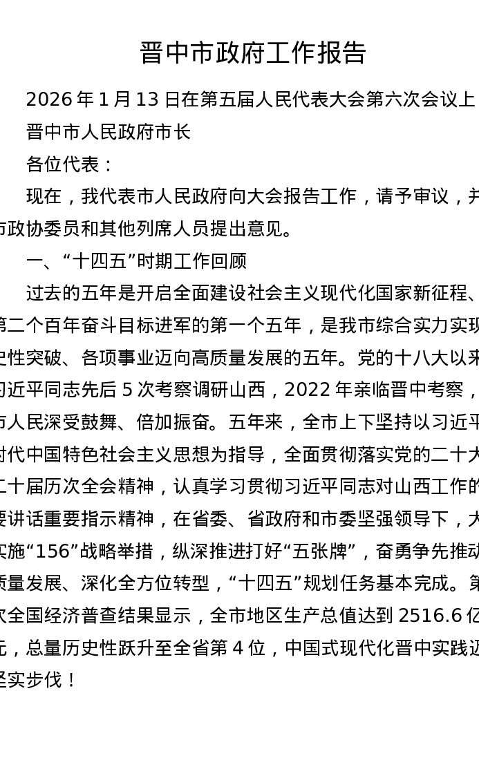 晋中市政府工作报告