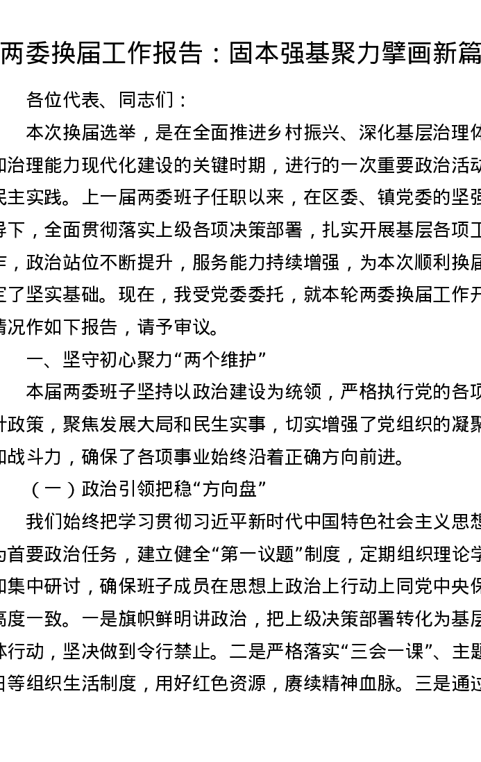 两委换届工作报告:固本强基聚力擘画新篇章