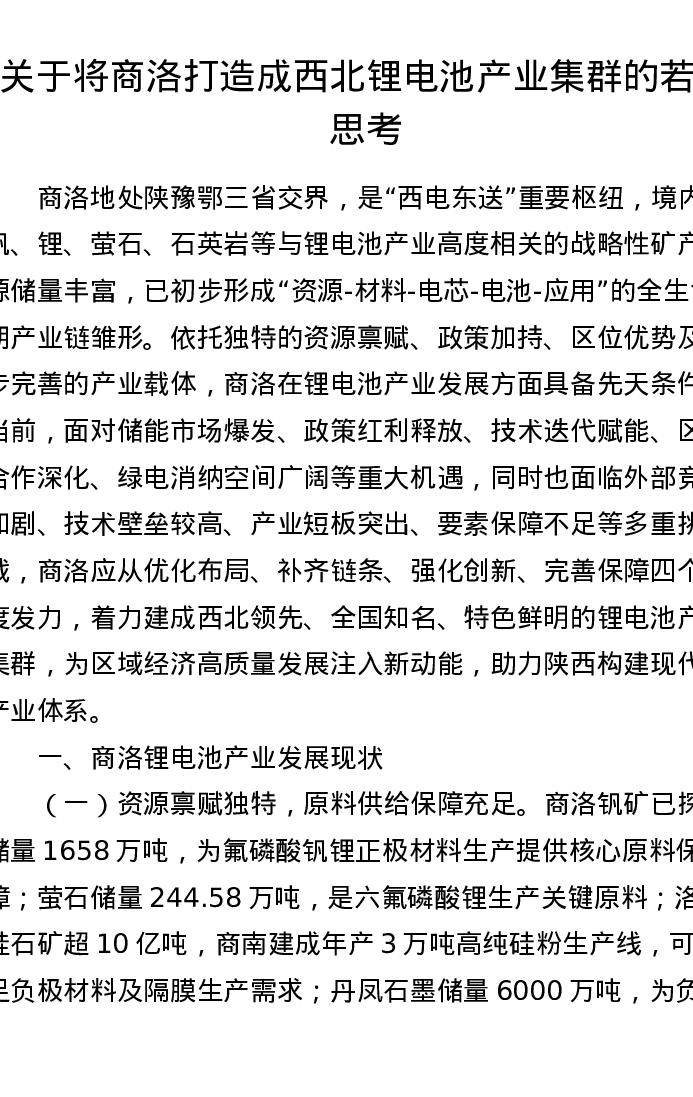 调研报告:关于将商洛打造成西北锂电池产业集群的若干思考