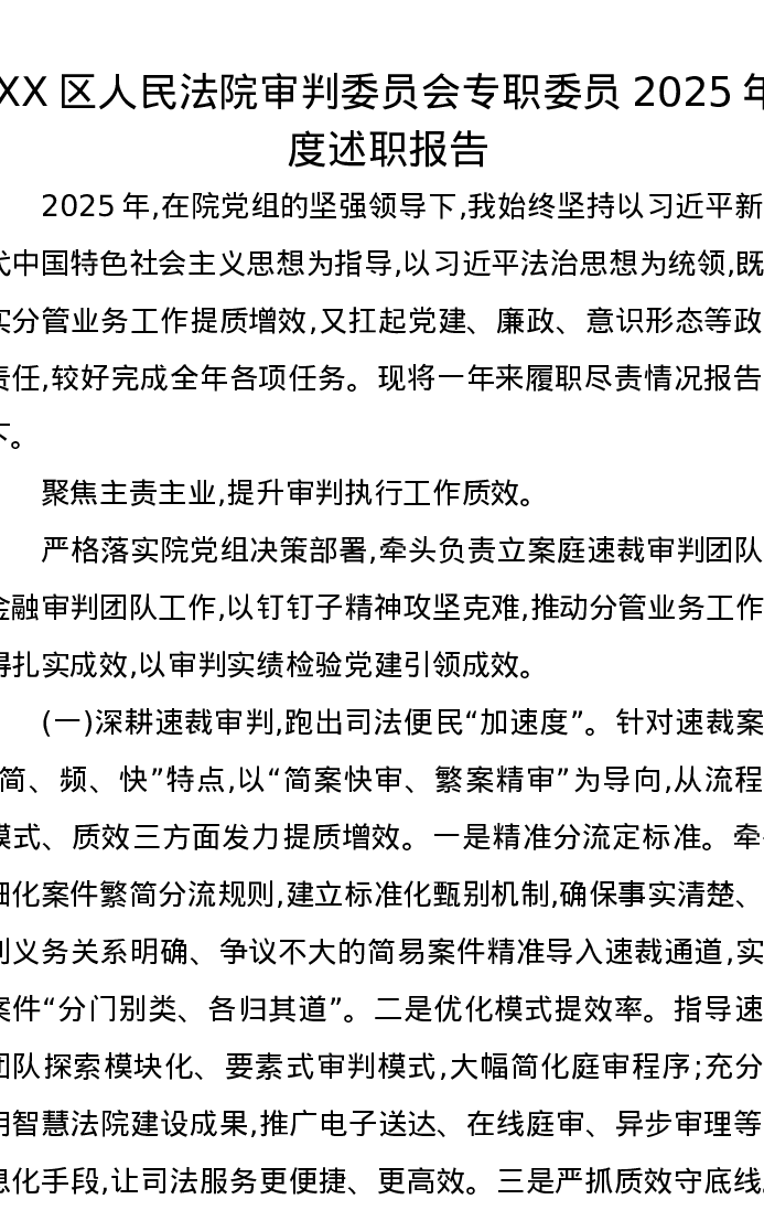 XX区人民法院审判委员会专职委员2025年度述职报告2