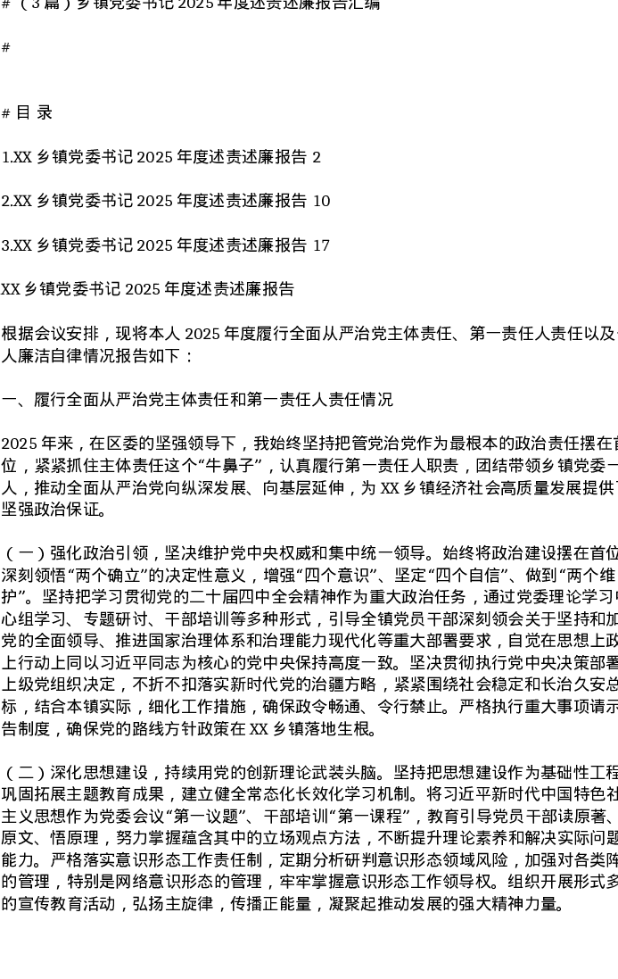 汇编:乡镇党委书记2025年度述责述廉报告3篇