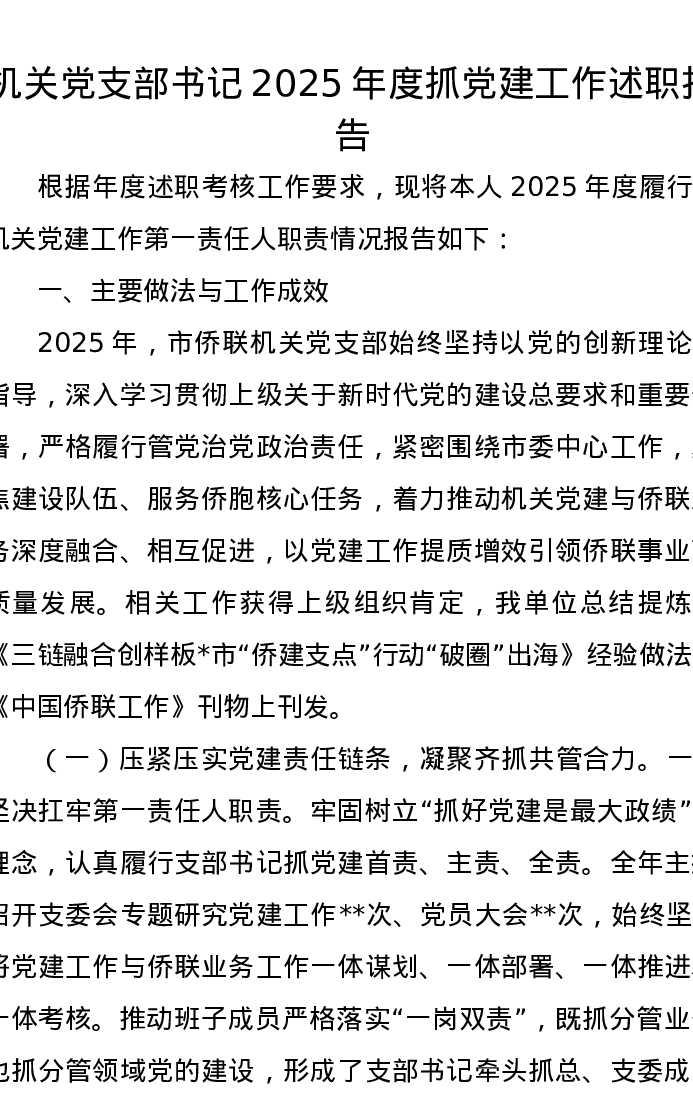 机关党支部书记 2025年度抓党建工作述职报告