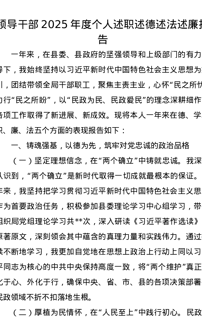 领导干部2025年度个人述职述德述法述廉报告