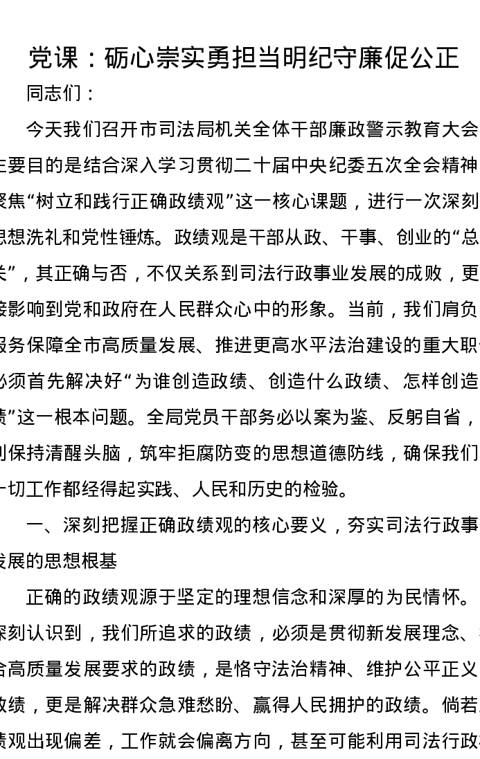 党课:砺心崇实勇担当 明纪守廉促公正