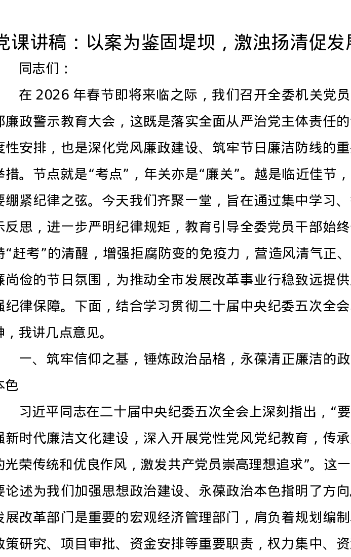 党课讲稿:以案为鉴固堤坝,激浊扬清促发展