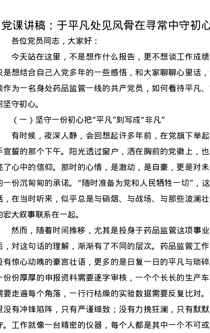党课讲稿:于平凡处见风骨 在寻常中守初心