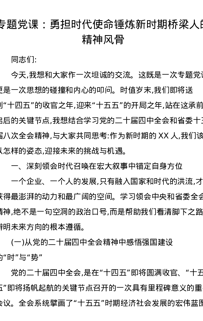 专题党课:勇担时代使命锤炼新时期桥梁人的精神风骨