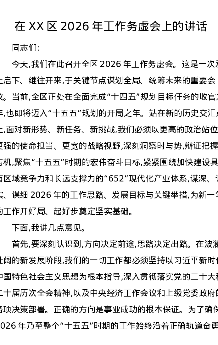 在XX区2026年工作务虚会上的讲话