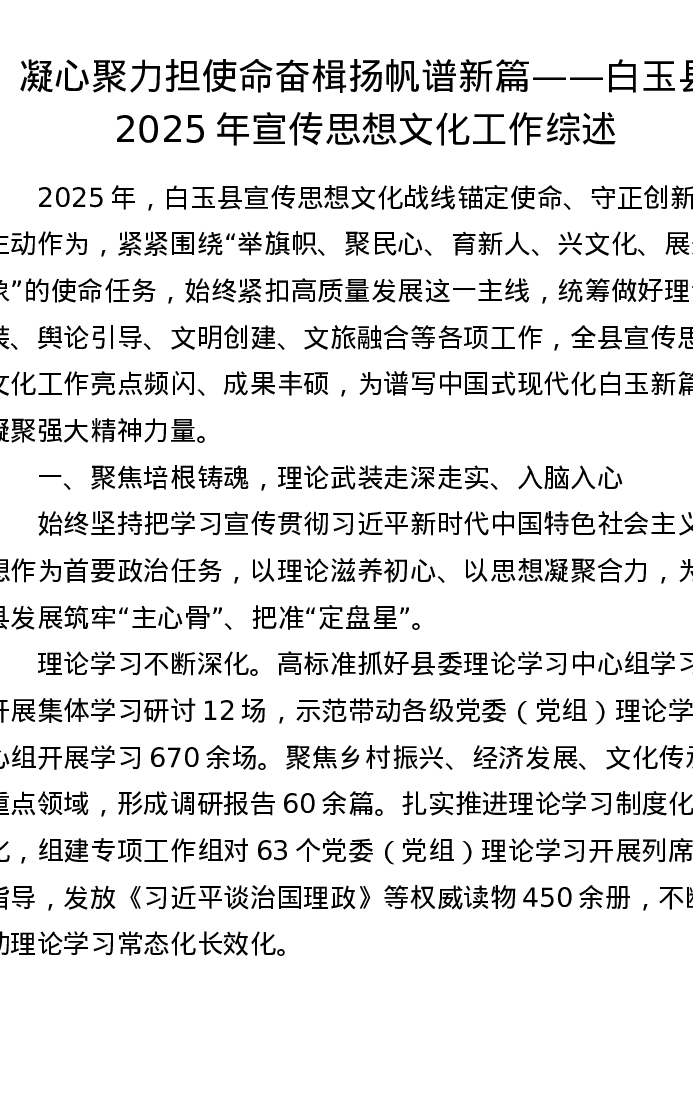 凝心聚力担使命奋楫扬帆谱新篇——白玉县2025年宣传思想文化工作综述