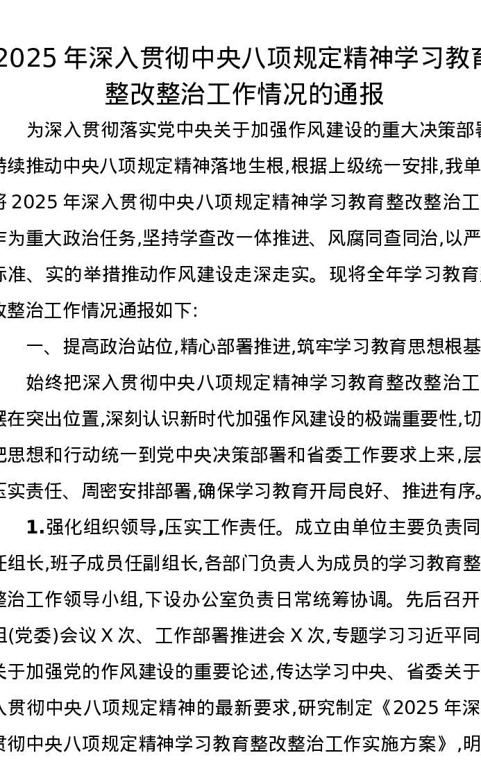 2025年深入贯彻中央八项规定精神学习教育整改整治工作情况的通报