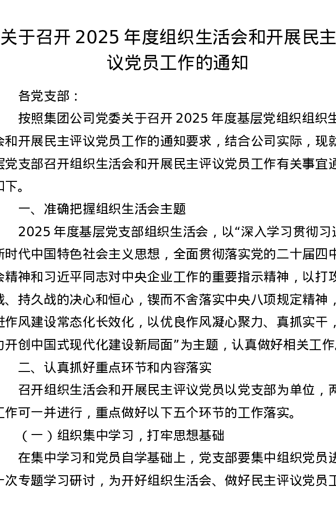 关于召开2025年度基层党组织组织xxx和开展民主评议党员工作的通知