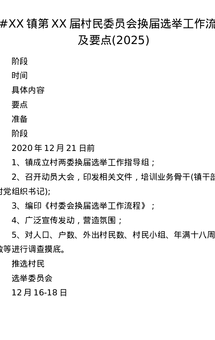 XX镇第XX届村民委员会换届选举工作流程及要点(2025)