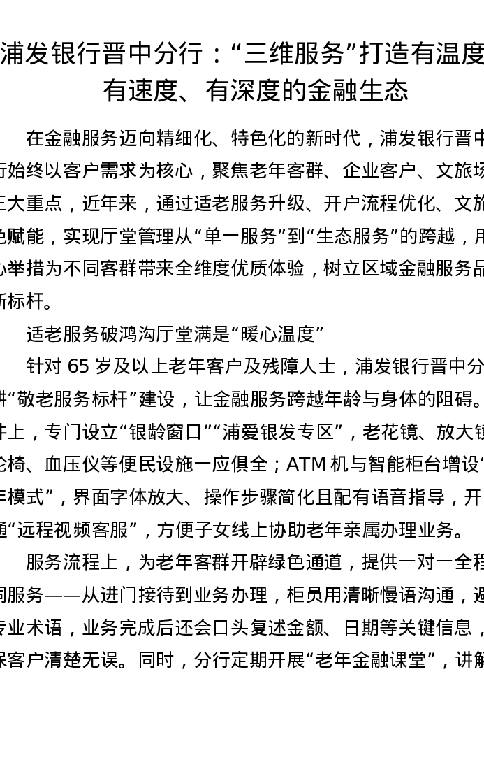 浦发银行晋中分行: 三维服务 打造有温度、有速度、有深度的金融生态