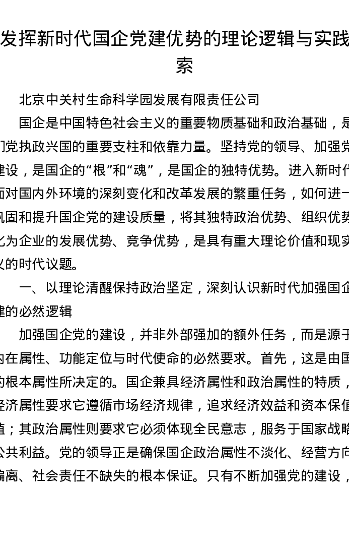 调研报告:发挥新时代国企党建优势的理论逻辑与实践探索